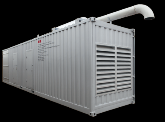 Reservkraftcontainer 12m med tillhörande bränslecontainer. Levererad effekt 800kVA COP.